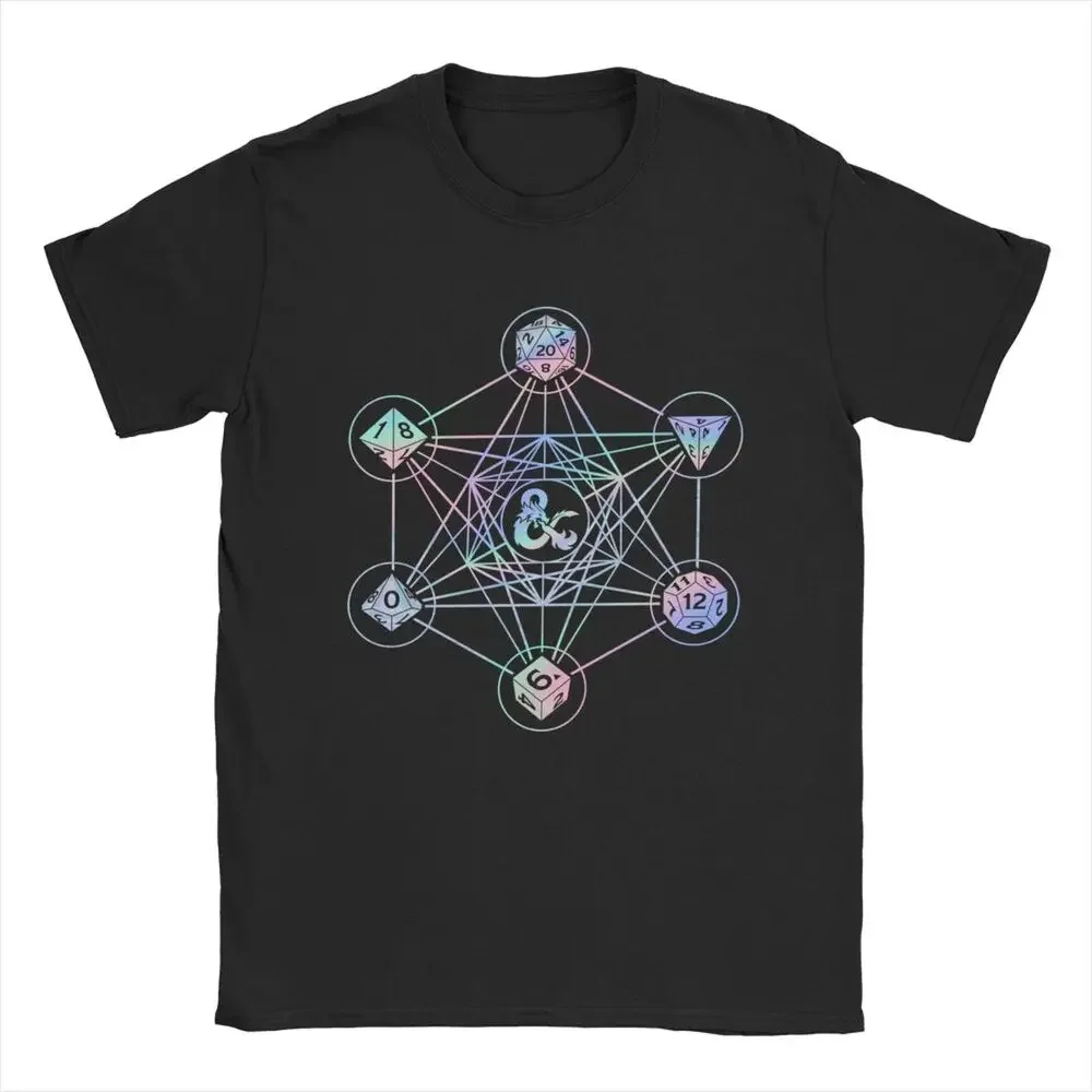 DnD Holographic Geometric Dice T-Shirts Men Game Amazing Pure Cotton Tee Shirt Crew Neck Short Sleeve T Shirt Big Size Tops